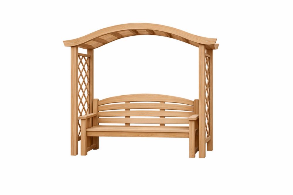 Cedar wood Garden Arbor Arch Bench with Lattice Sides Light Brown
