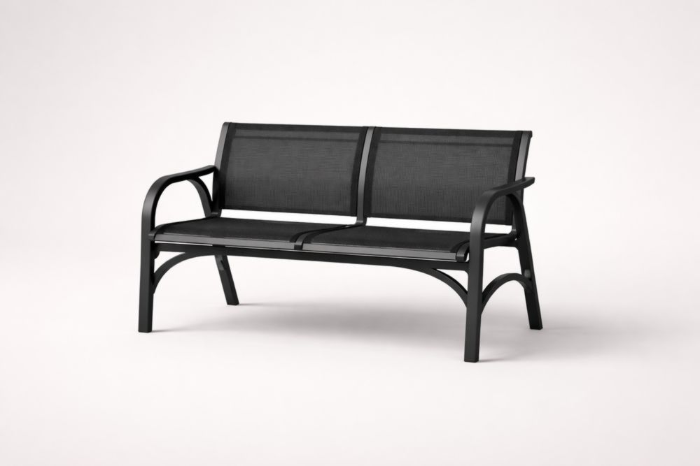 Outdoor Two-Seater Bench Aluminum Frame Black Mesh